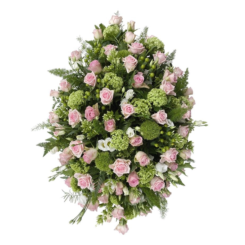 Het rouwboeket Veldzicht is een weelderig en modern pastelkleurig boeket. Het rouwboeket kenmerkt zich door de pasteltinten en zachte bloemen. Een prachtig boeket voor een mooi en liefdevol afscheid.